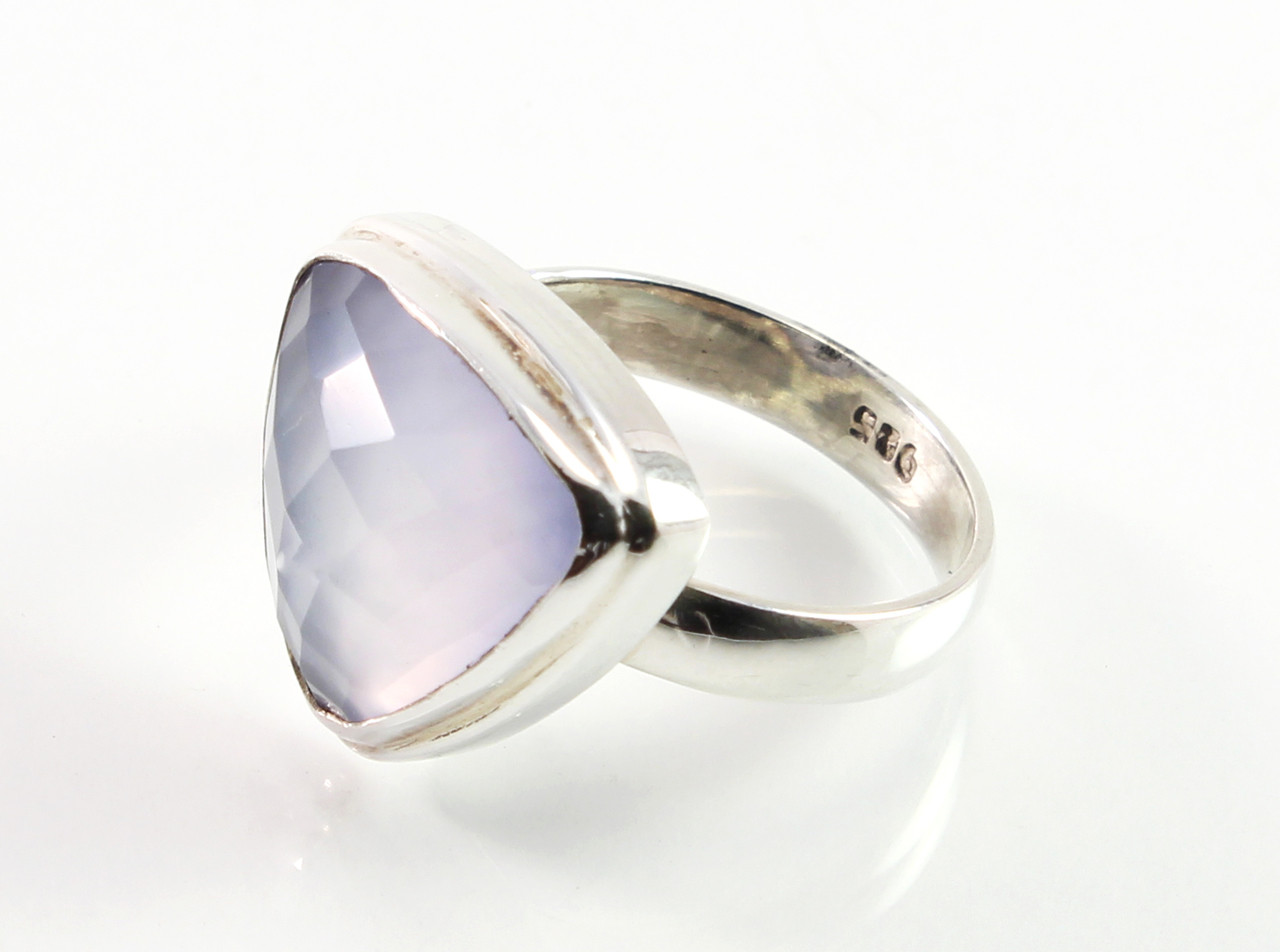 This Sterling silver ring is handmade in Bali and features a trilliant cut natural chalcedony. Right now it is available in size 7, but it can be sized!