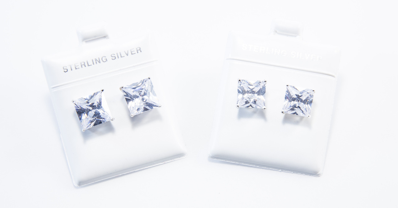 These beautiful Sterling silver white cubic zirconia earrings are in a princess cut, and come in 9MM, or 10MM size.