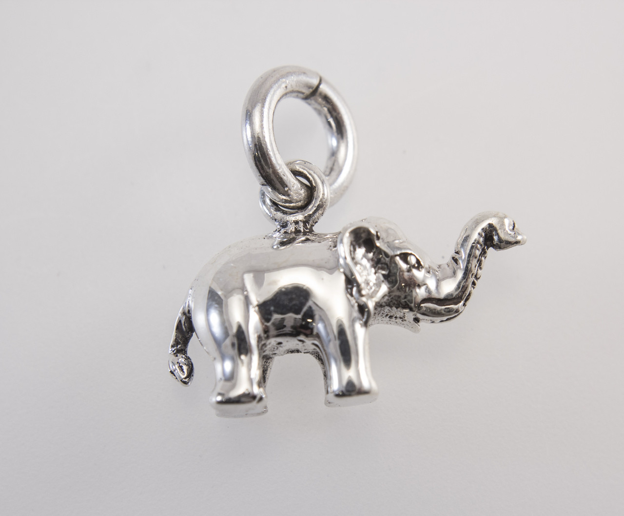 This Sterling silver medium sized elephant pendant is precision casted to achieve detail, down to its tusks.