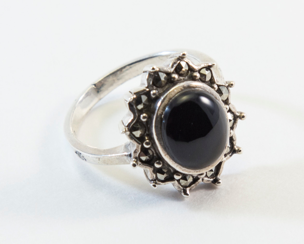 Sun-Shaped Black Onyx and Marcasite Ring