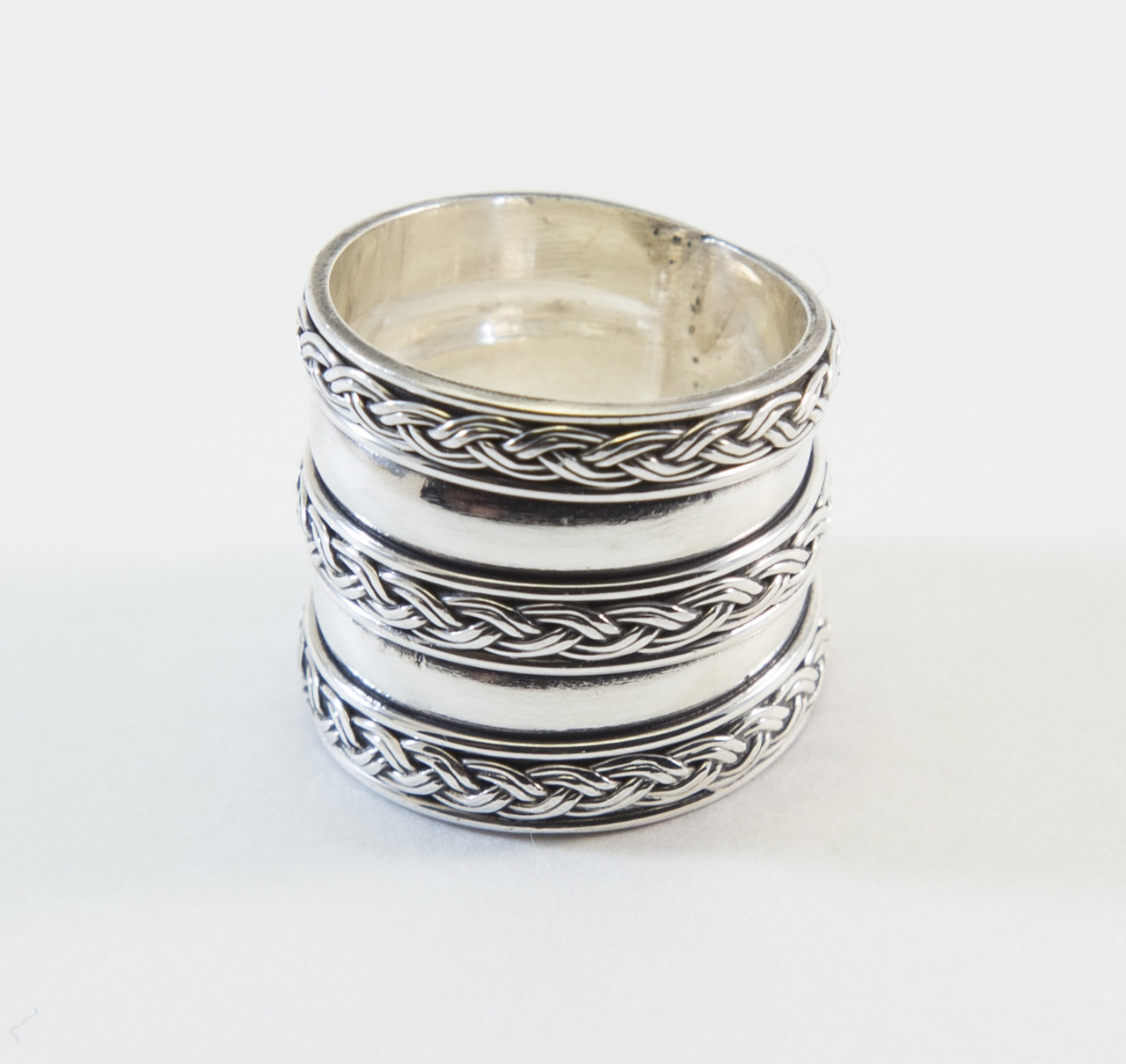 This unique Sterling silver band ring is handmade in Bali with a three rope pattern.